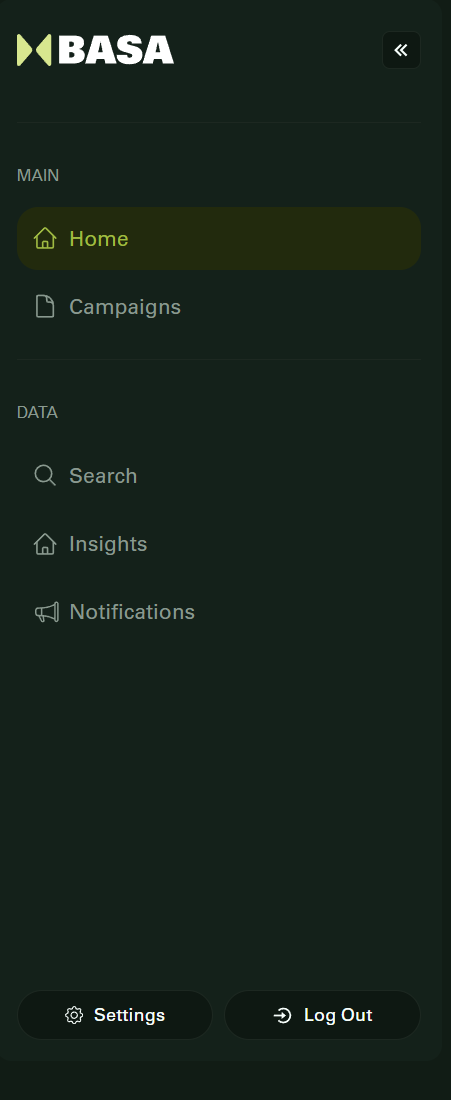 This home view ensures you can easily access everything you need to participate in or manage campaigns efficiently.